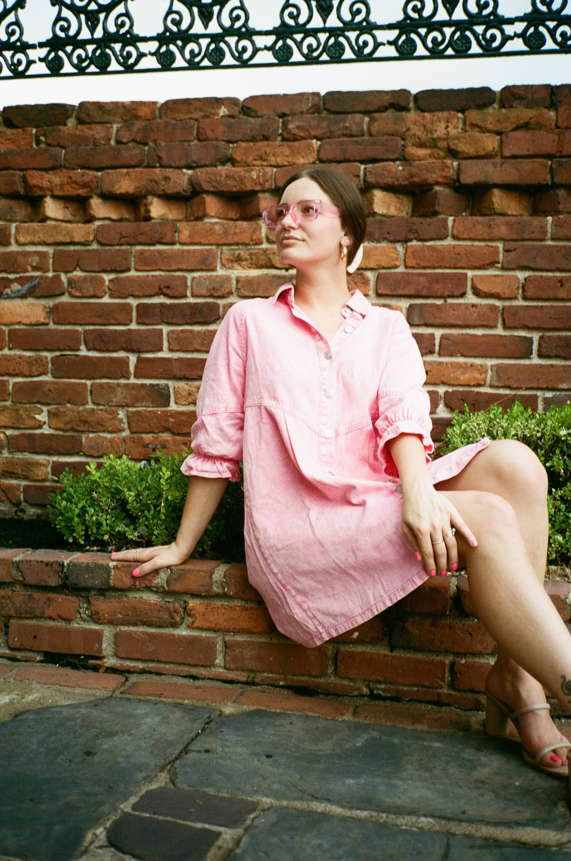 This pink denim tunic dress is everything and then some. Wit’s it’s full functioning buttons and stretch fabric you’re sure to be the life of the party!